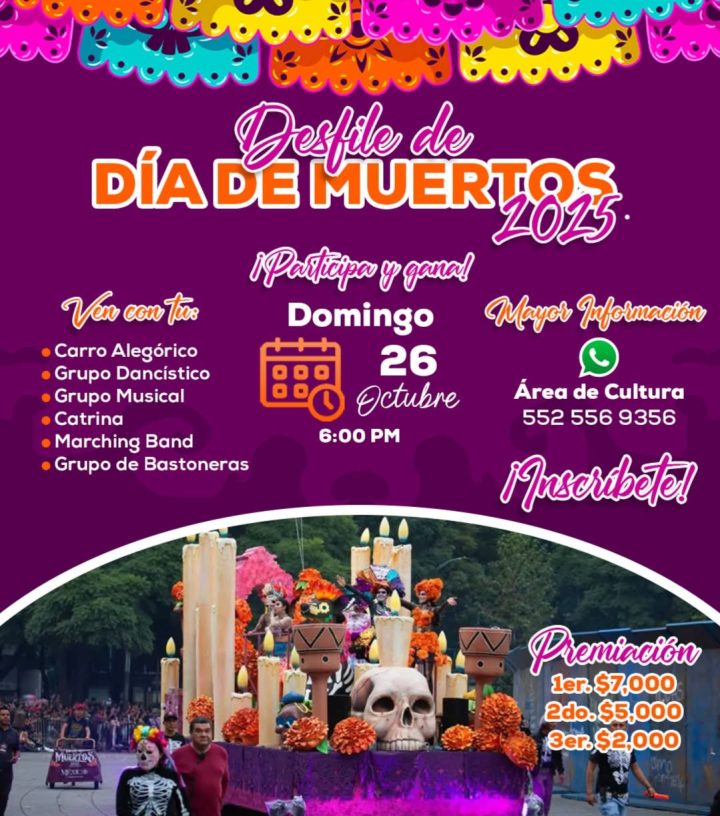 El desfile tendrá lugar en el parque municipal, con la participación de carros alegóricos, grupos dancísticos, catrinas, catrines, marching bands y un grupo de bastoneras. Esta actividad, más allá de su atractivo visual, busca fortalecer el sentido de identidad cultural y el compromiso de la comunidad con sus costumbres más representativas.
