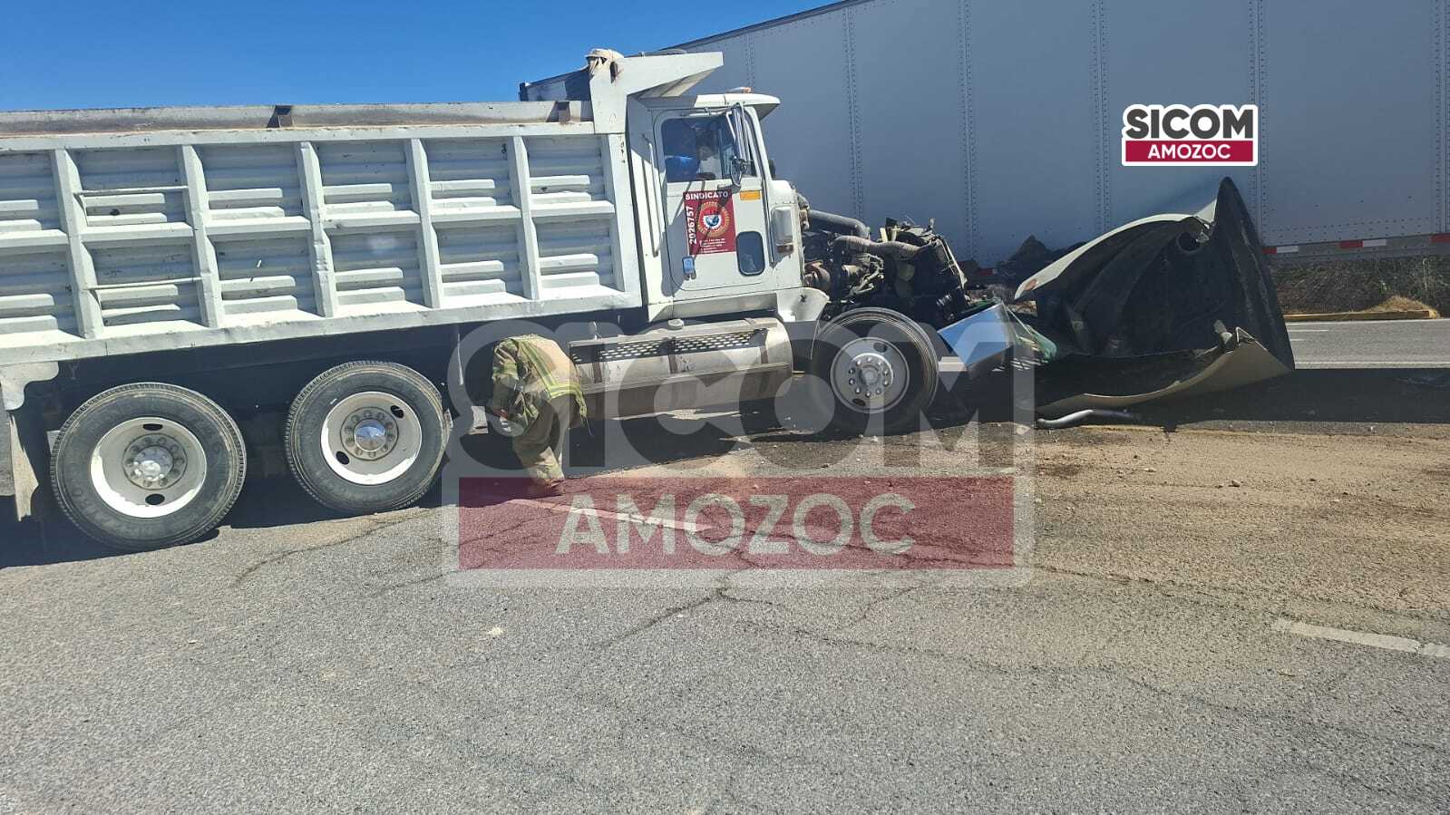 De acuerdo con el reporte oficial, un camión de volteo con placas del estado de Tlaxcala se impactó contra la caja de un tractocamión con placas del Estado de México.