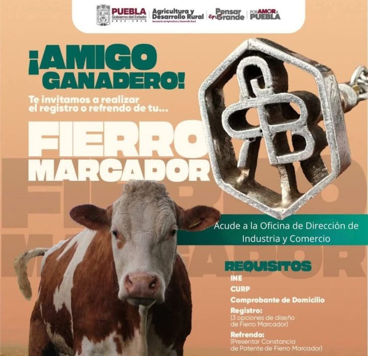 El Gobierno del Estado, a través de la Secretaría de Agricultura y Desarrollo Rural, en coordinación con las autoridades municipales de Tecali de Herrera, invita a las y los productores del municipio a realizar el registro o refrendo de la patente de Fierro Marcador.