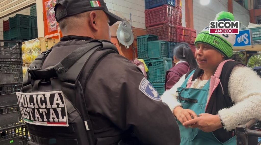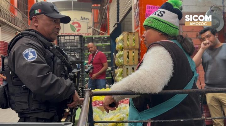 Durante un recorrido especial, el equipo de SICOM Amozoc acompañó a los agentes en un operativo de prevención tanto al interior como en la periferia del mercado, mediante patrullajes y vigilancia a pie en pasillos y accesos. Berta Arrollo, quien vende frutas dijo sentirse protegida: