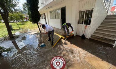 Protección Civil y habitantes de Las Cruces colaboran para atender los efectos de la intensa lluvia del lunes por la noche.
